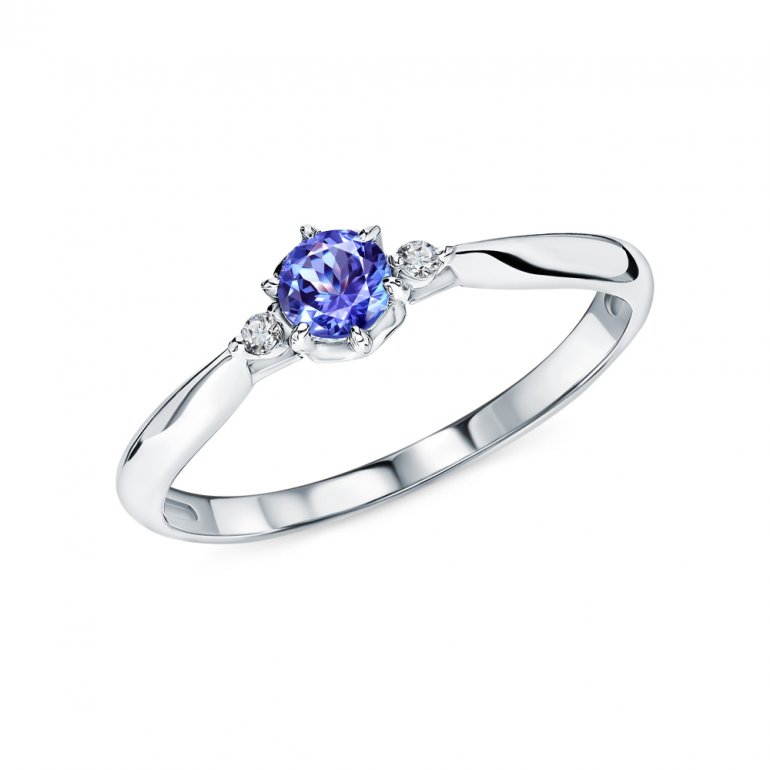 Кольцо с 1 танзанитом природным, 0.265 карат, тип огранки В; фианитом бесцветным; Серебро 925 пробы.