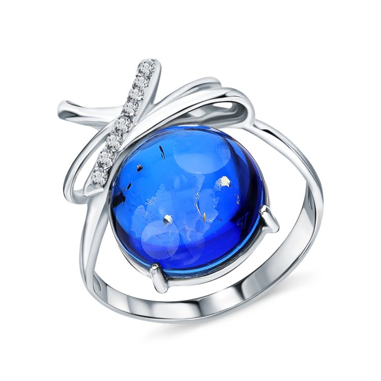 Кольцо с 1 янатрем синим; стекло бесцветное; Серебро 925 пробы.