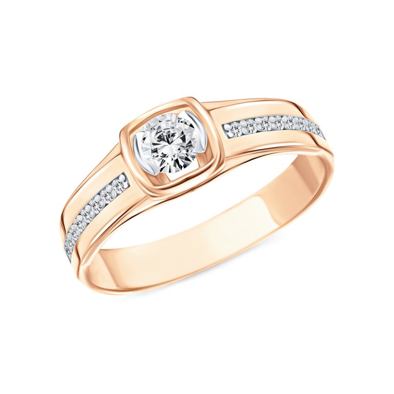 Кольцо, вставка: фианит бесцветный;  фианит бесцветный; Розовое золото 585 пробы.