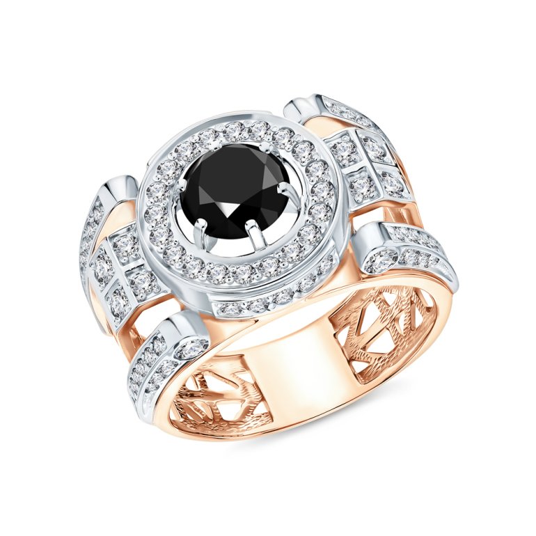 Кольцо, вставка: фианитом бесцветным;  черным фианитом; Розовое и белое золото 585 пробы.