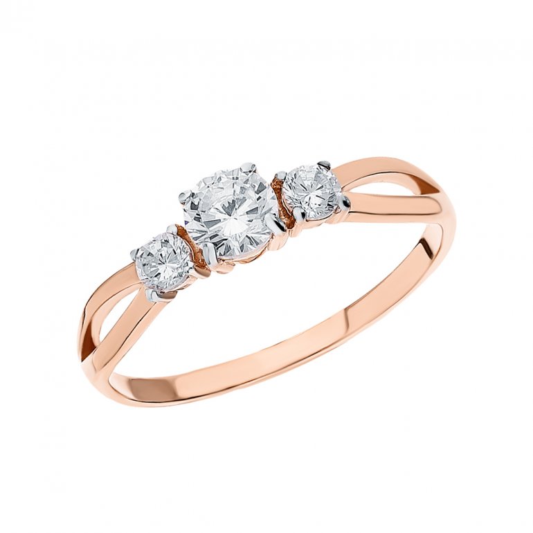 Кольцо, вставка: фианит; Розовое золото 585 пробы.