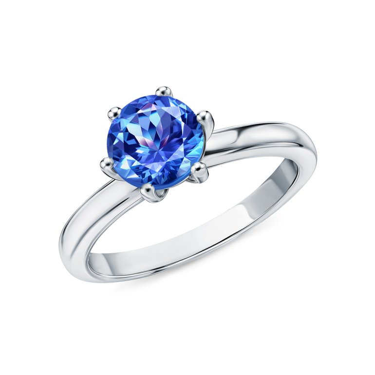 Кольцо с 1 муассанитом синим, 1.21 карат; Серебро 925 пробы.