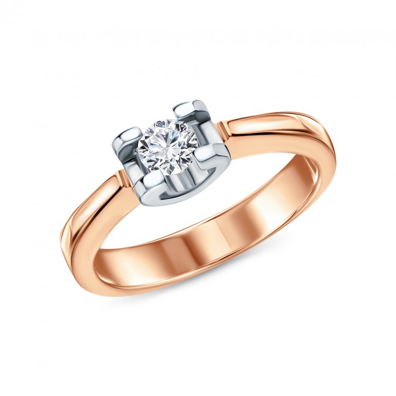 Кольцо с 1 бриллиантом, 0.195 карат, огранка круг 57 граней, цвет 3, чистота 6, тип огранки А; Розовое и белое золото 585 пробы.