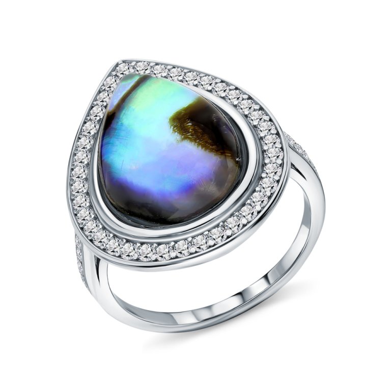Кольцо с 1 ракушкой; фианитом бесцветным; Серебро 925 пробы.