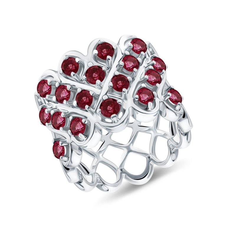 Кольцо с 18 рубинами С, 1.749 карат, чистота 2; Серебро 925 пробы.