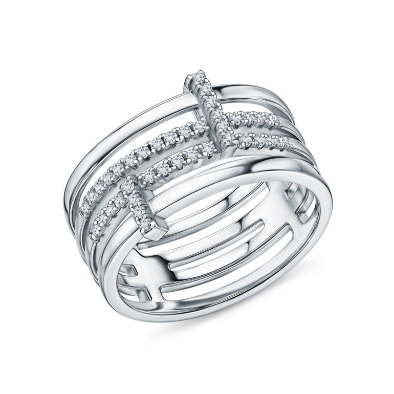 Серебряное кольцо с фианитами S57092-K9W-01 Кольца SUNLIGHT | V4.Ru: Маркетплейс