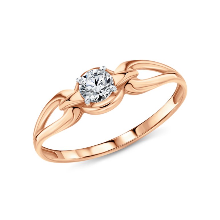Кольцо, вставка: фианитом бесцветным; Розовое золото 585 пробы.