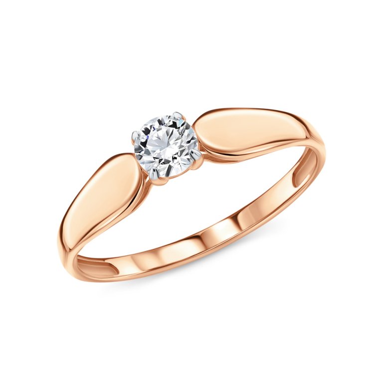 Кольцо, вставка: фианитом бесцветным; Розовое золото 585 пробы.