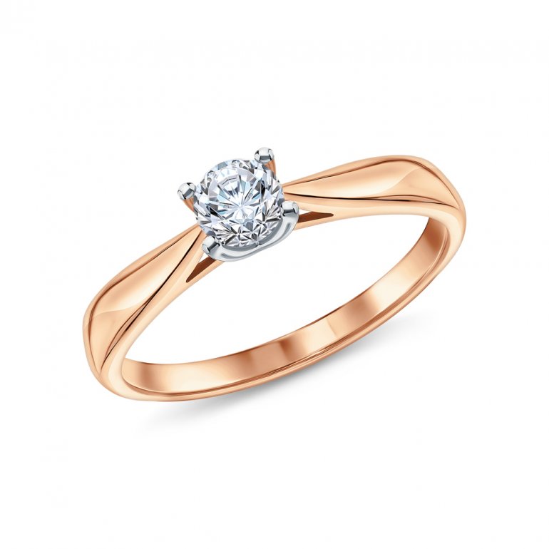 Кольцо с 1 бриллиантом природным, 0.244 карат, огранка круг 57 граней, цвет 5, чистота 7, тип огранки А; Розовое золото 585 пробы.