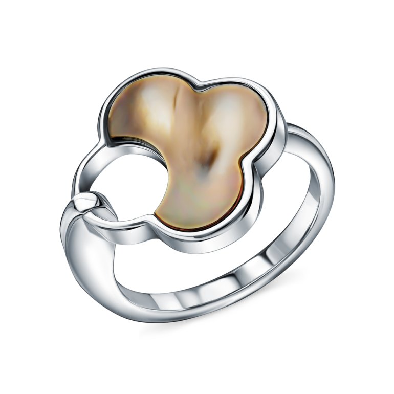 Кольцо с 1 перламутром черным природным, 2.37 карат, тип огранки Б; Серебро 925 пробы.