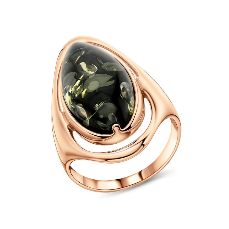 Кольцо с 1 янтарем зеленым природным; Серебро 925 пробы.