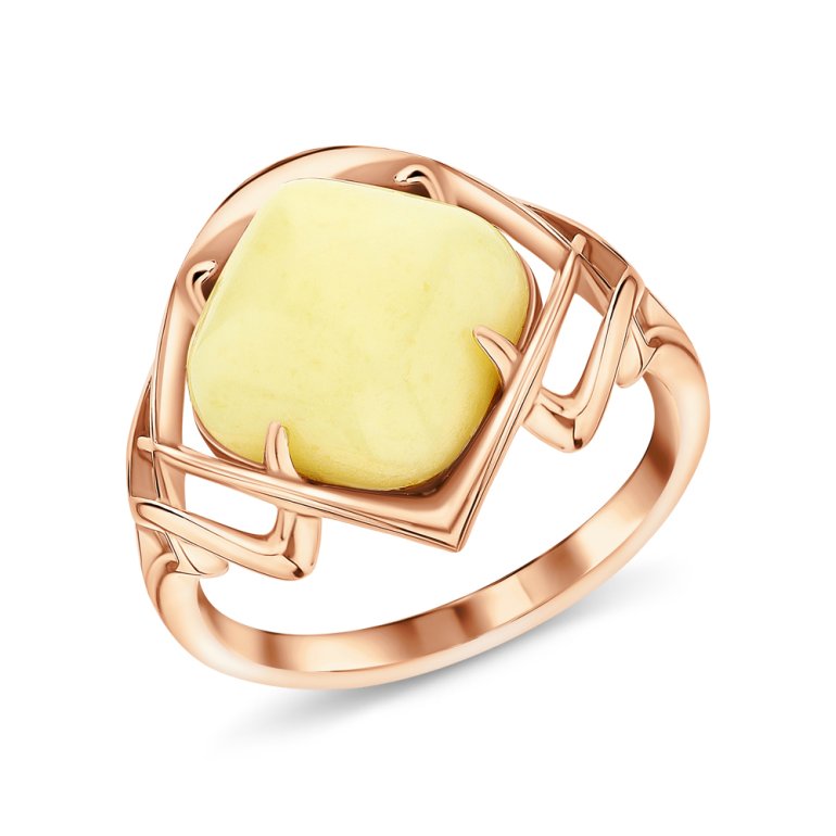 Кольцо с 1 янтарем белым природным; Серебро 925 пробы.