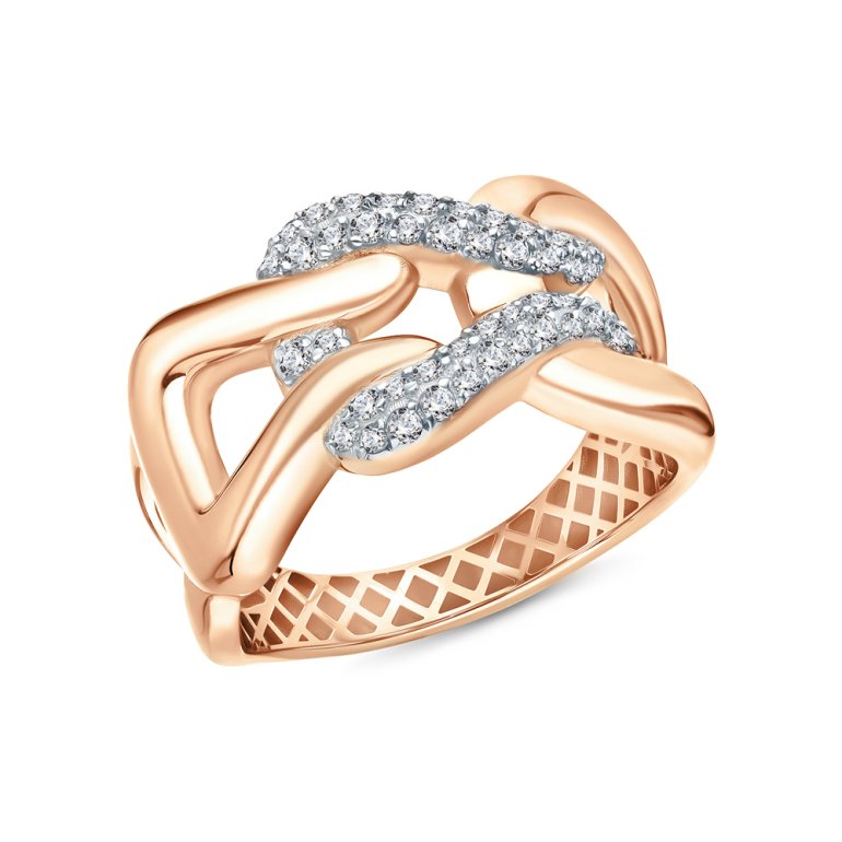 Кольцо, вставка: фианитом бесцветным; Розовое золото 585 пробы.