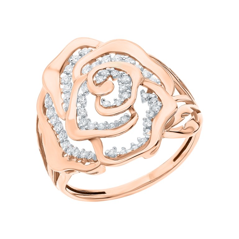 Кольцо, вставка: фианит; Розовое золото 585 пробы.