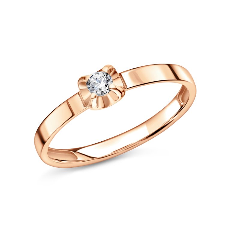 Кольцо, вставка: фианитом бесцветным; Розовое золото 585 пробы.