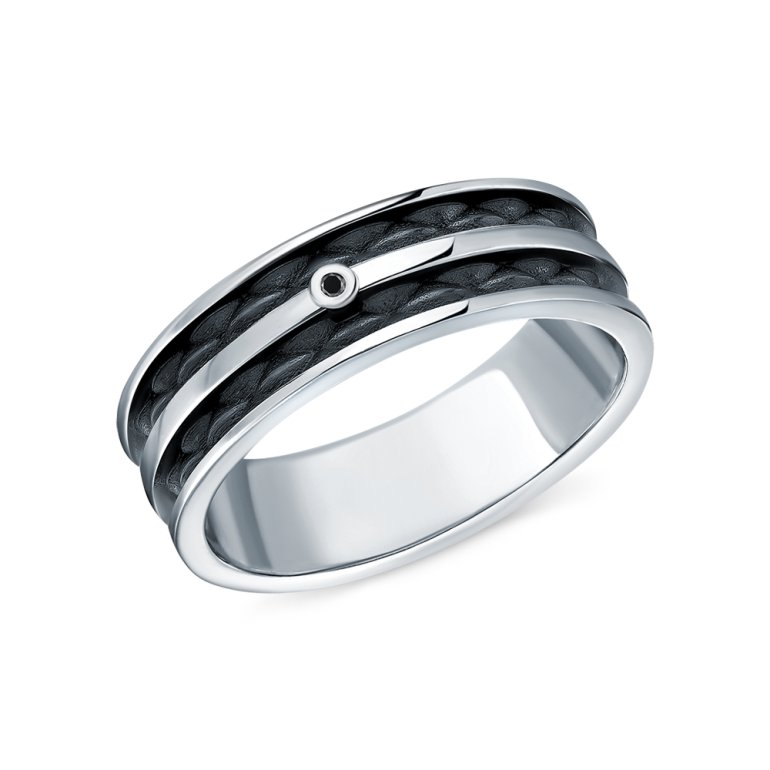 Кольцо с 1 бриллиантом черным природным облагороженным, 0.015 карат, огранка круг 57 граней, цвет 7, чистота 6, тип огранки А; Серебро 925 пробы.