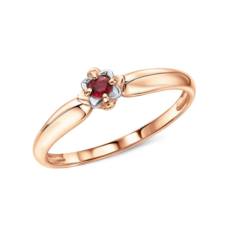 Кольцо с 1 рубином природным, 0.081 карат, цвет 2, чистота 2, тип огранки В; Розовое золото 585 пробы.