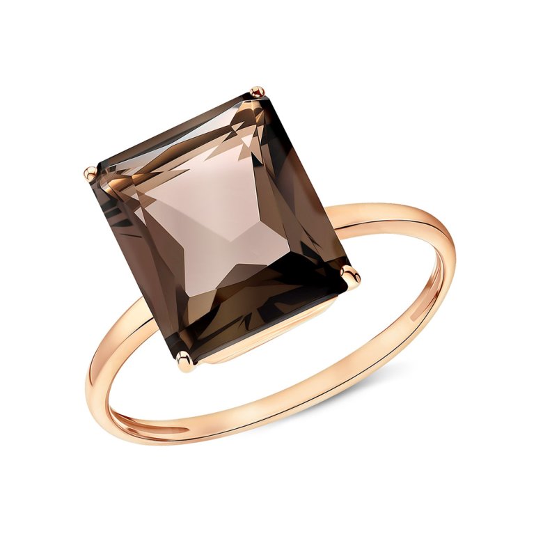 Кольцо с 1 кварцем дымчатым природным, 5. карат, тип огранки Б; Розовое золото 585 пробы.