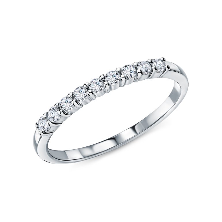 Кольцо с 9 бриллиантами природными, 0.282 карат, огранка круг 57 граней, цвет 3, чистота 6, тип огранки А; Белое золото 585 пробы.