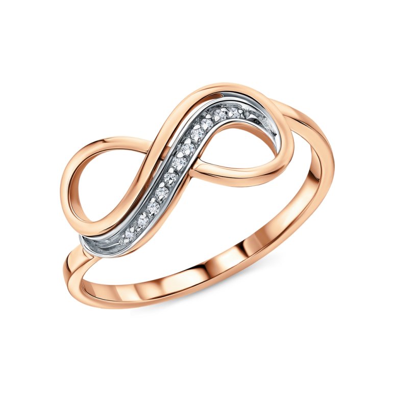 Кольцо с 11 бриллиантами, 0.023 карат, огранка круг 17 граней, цвет 2, чистота 2, тип огранки А; Розовое золото 585 пробы.