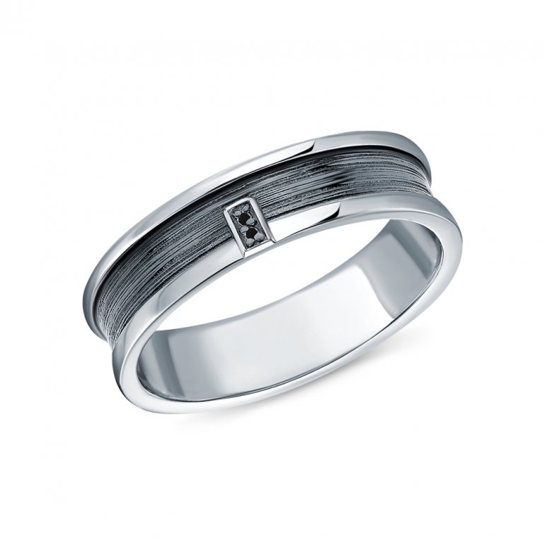 Кольцо с 2 бриллиантами черными природными облагороженными, 0.009 карат, огранка круг 57 граней, цвет 7, чистота 6, тип огранки А; Серебро 925 пробы.