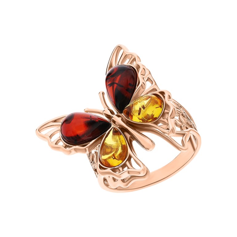 Кольцо с 1 янтарем, тип огранки Б; Серебро 925 пробы.