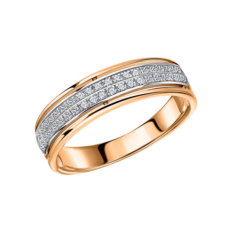 Кольцо с 42 бриллиантами природными, 0.11 карат, огранка круг 17 граней, цвет 2, чистота 2, тип огранки Б; Розовое золото 585 пробы.
