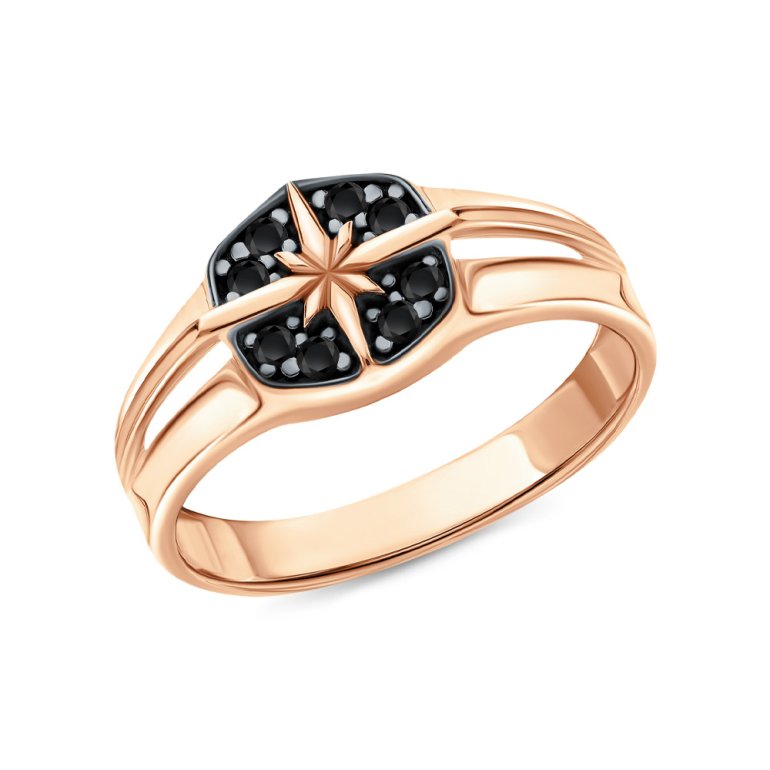 Кольцо, вставка: ситалл черный; Розовое золото 585 пробы.