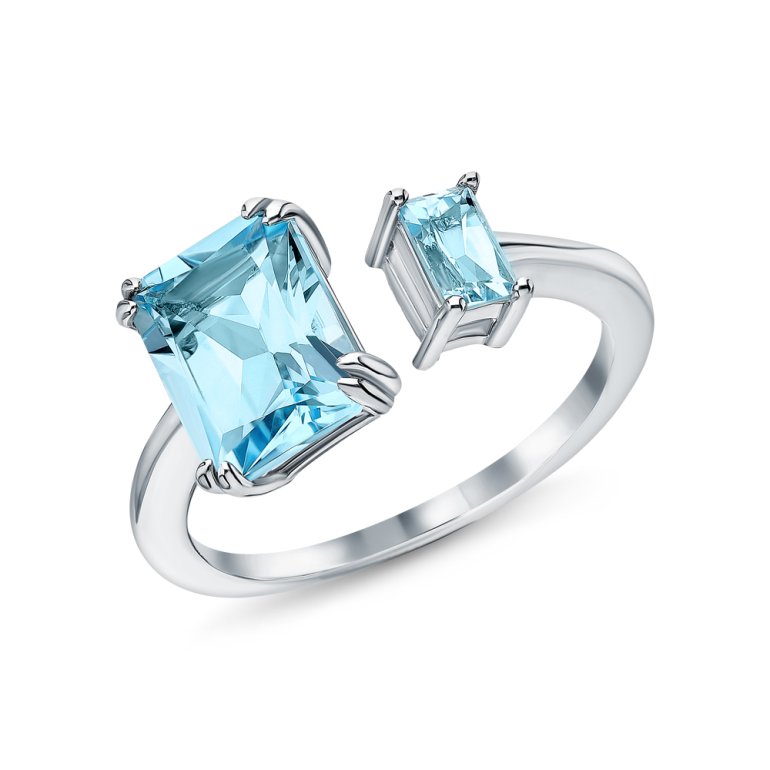 Кольцо с 2 топазами скай природными, 2.55 карат, тип огранки Б; Серебро 925 пробы.
