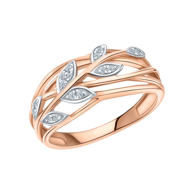 Кольцо с 17 бриллиантами, 0.048 карат, огранка круг 17 граней, цвет 2, чистота 2, тип огранки А; Розовое золото 585 пробы.