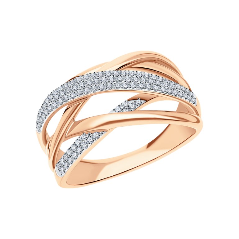 Кольцо с 98 бриллиантами, 0.205 карат, огранка круг 17 граней, цвет 2, чистота 2, тип огранки А; Розовое золото 585 пробы.