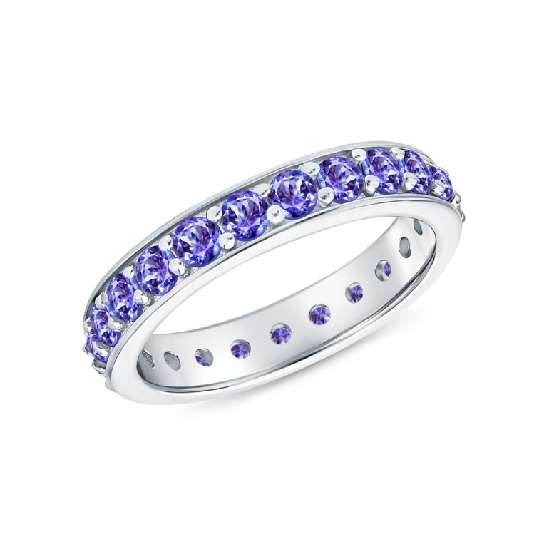 Кольцо с 22 танзанитами природными, 1.54 карат; Серебро 925 пробы.