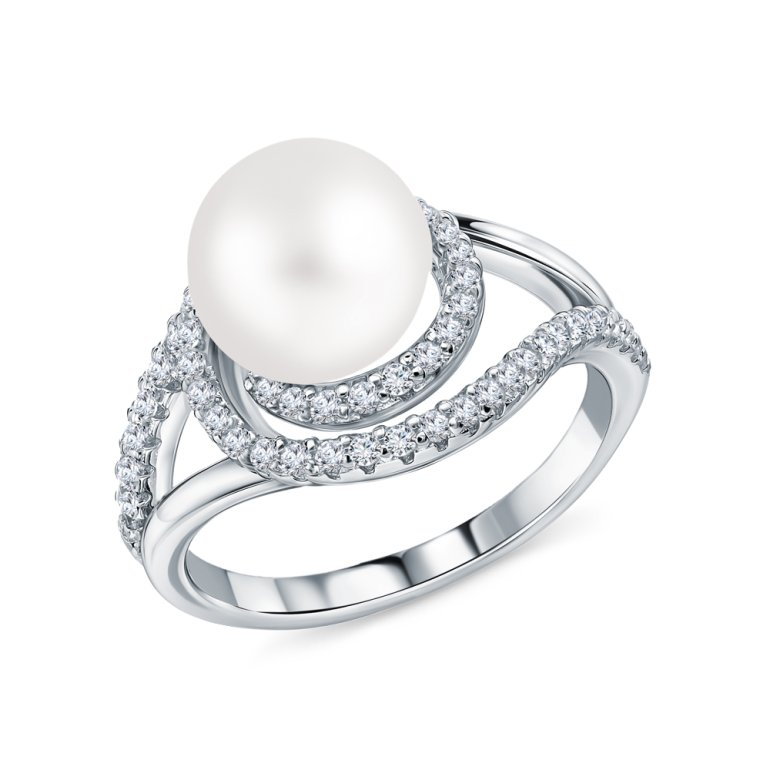 Серебряное кольцо с жемчугом и фианитами S92231-K9W-01 Кольца SUNLIGHT | V4.Ru: Маркетплейс