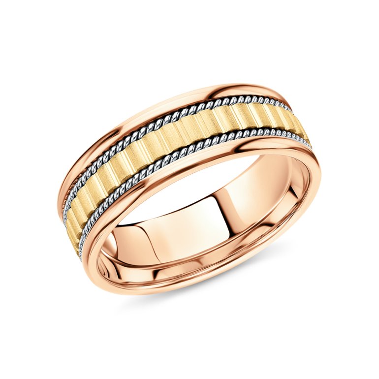 Кольцо Розовое, белое и желтое золото 585 пробы.
