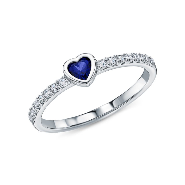 Кольцо с 1 сапфиром синтетическим, 0.2 карат;  фианитом бесцветным; Серебро 925 пробы.