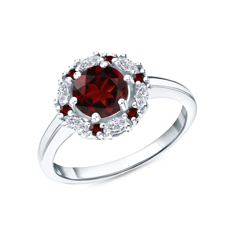 Серебряное кольцо с фианитами и гранатами природными