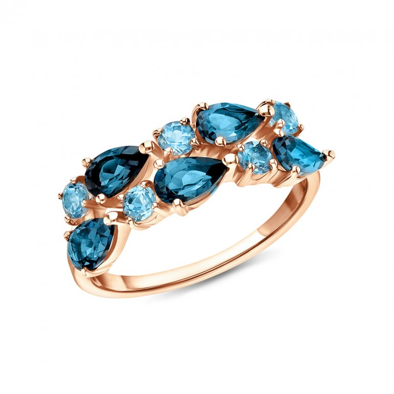 Кольцо с 5 топазами лондон природными, 1.188 карат, тип огранки Б; 5 топазами свисс природными, 0.398 карат, тип огранки В; Розовое золото 585 пробы.