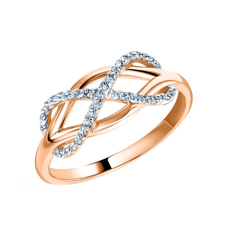 Кольцо с 38 бриллиантами природными, 0.082 карат, огранка круг 17 граней, цвет 2, чистота 2, тип огранки Б; Розовое золото 585 пробы.