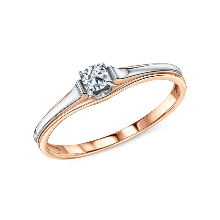 Кольцо с 1 бриллиантом природным, 0.093 карат, огранка круг 57 граней, цвет 3, чистота 6, тип огранки А; Розовое золото 585 пробы.