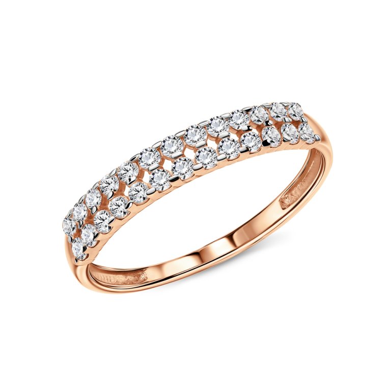Кольцо, вставка: фианитом бесцветным; Розовое золото 375 пробы.