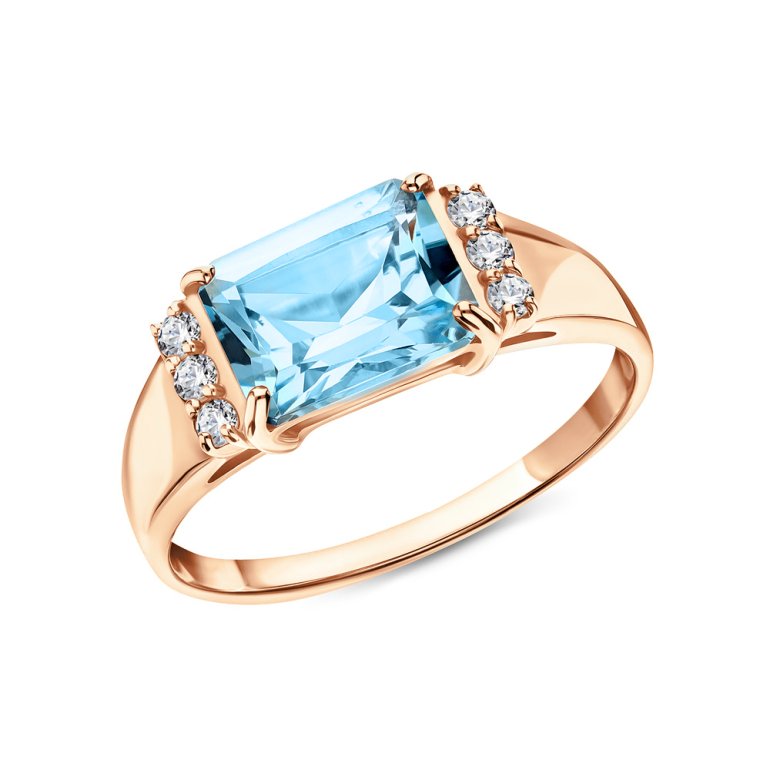 Кольцо с 1 топазом скай природным, 1.908 карат, тип огранки Б; фианит; Розовое золото 585 пробы.