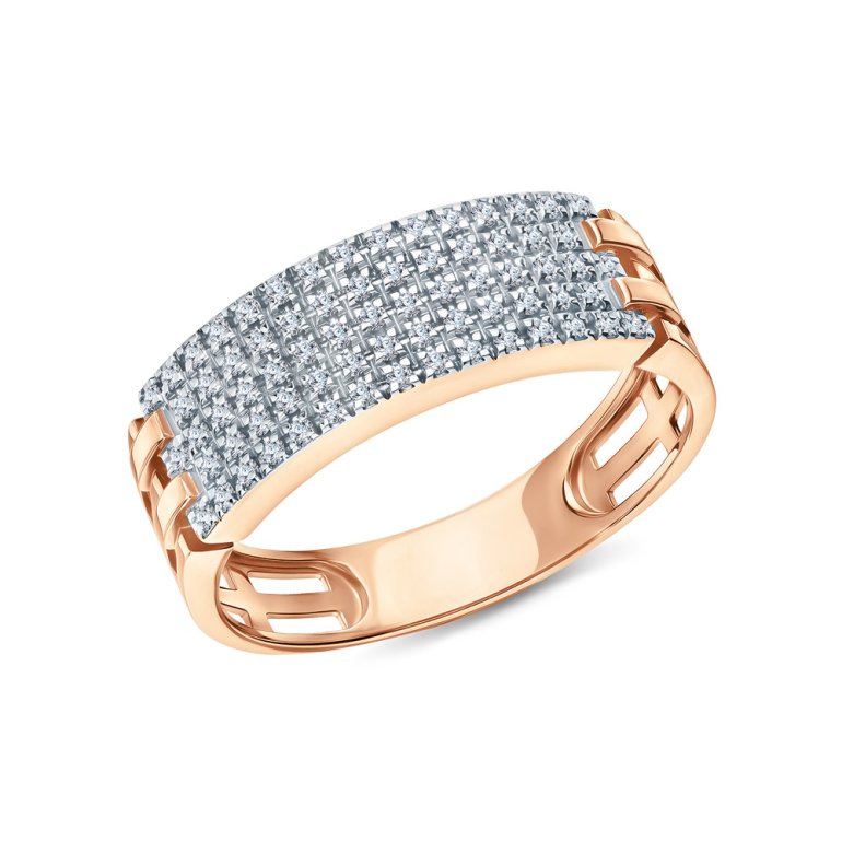 Кольцо с 71 бриллиантом, 0.211 карат, огранка круг 17 граней, цвет 2, чистота 2, тип огранки А; Розовое золото 585 пробы.