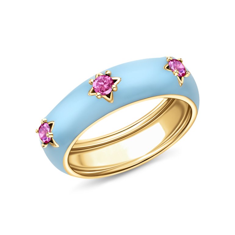 Кольцо, вставка: фианит розовый;  эмаль голубая; Серебро 925 пробы.