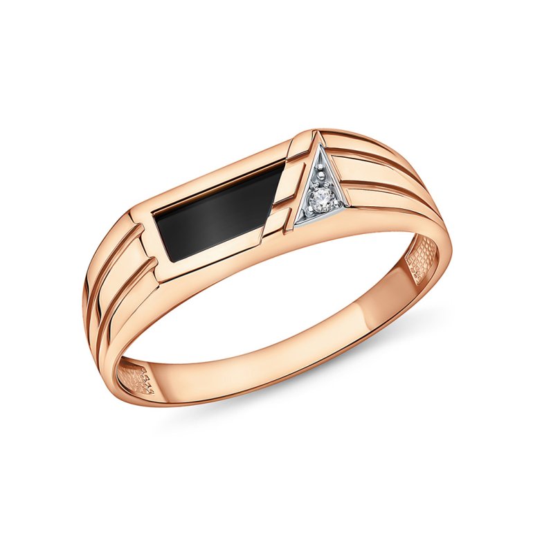 Кольцо, вставка: черным фианитом;  фианитом бесцветным; Розовое золото 585 пробы.
