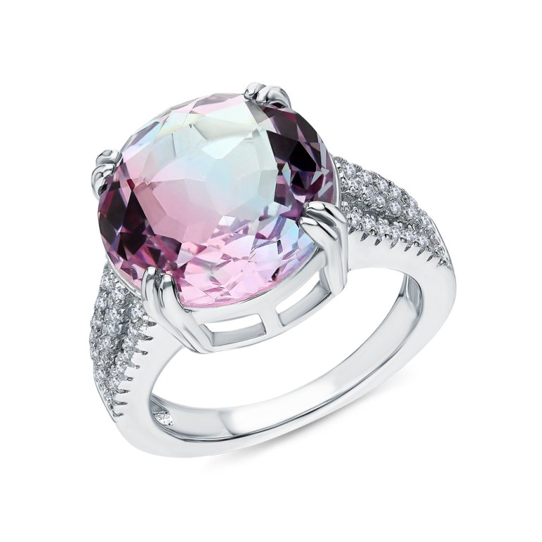 Кольцо, вставка: фианитом бесцветным;  фианит мистик; Серебро 925 пробы.