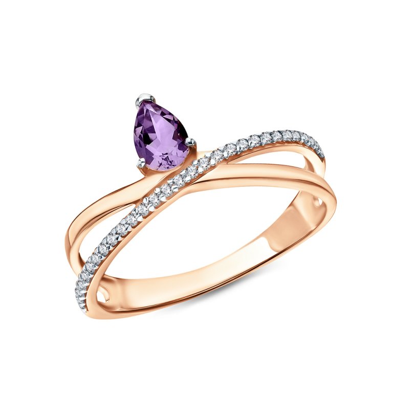 Кольцо с 1 аметистом, 0.352 карат, тип огранки Б; фианитом бесцветным; Розовое золото 585 пробы.
