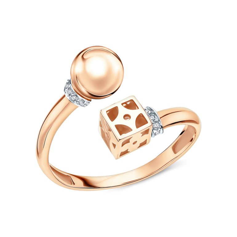 Кольцо, вставка: фианитом бесцветным; Розовое золото 585 пробы.