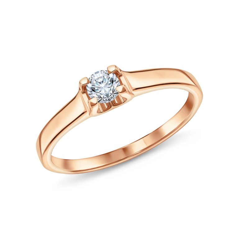 Кольцо с 1 бриллиантом природным, 0.115 карат, огранка круг 57 граней, цвет 4, чистота 6, тип огранки А; Розовое золото 585 пробы.