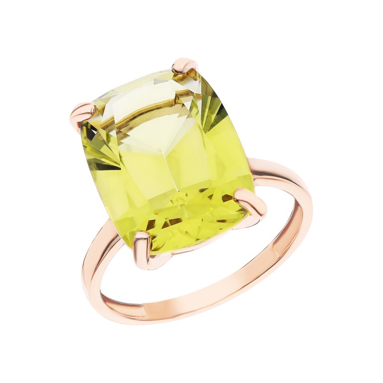 Кольцо с 1 кварцем лимонным природным, 9.489 карат, тип огранки Б; Розовое золото 585 пробы.