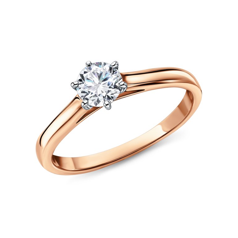 Кольцо с 1 бриллиантом, 0.405 карат, огранка круг 57 граней, цвет 5, чистота 7а, тип огранки А; Розовое золото 585 пробы.